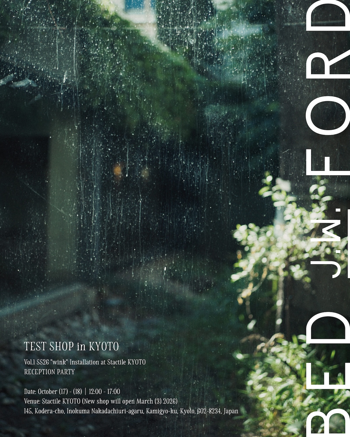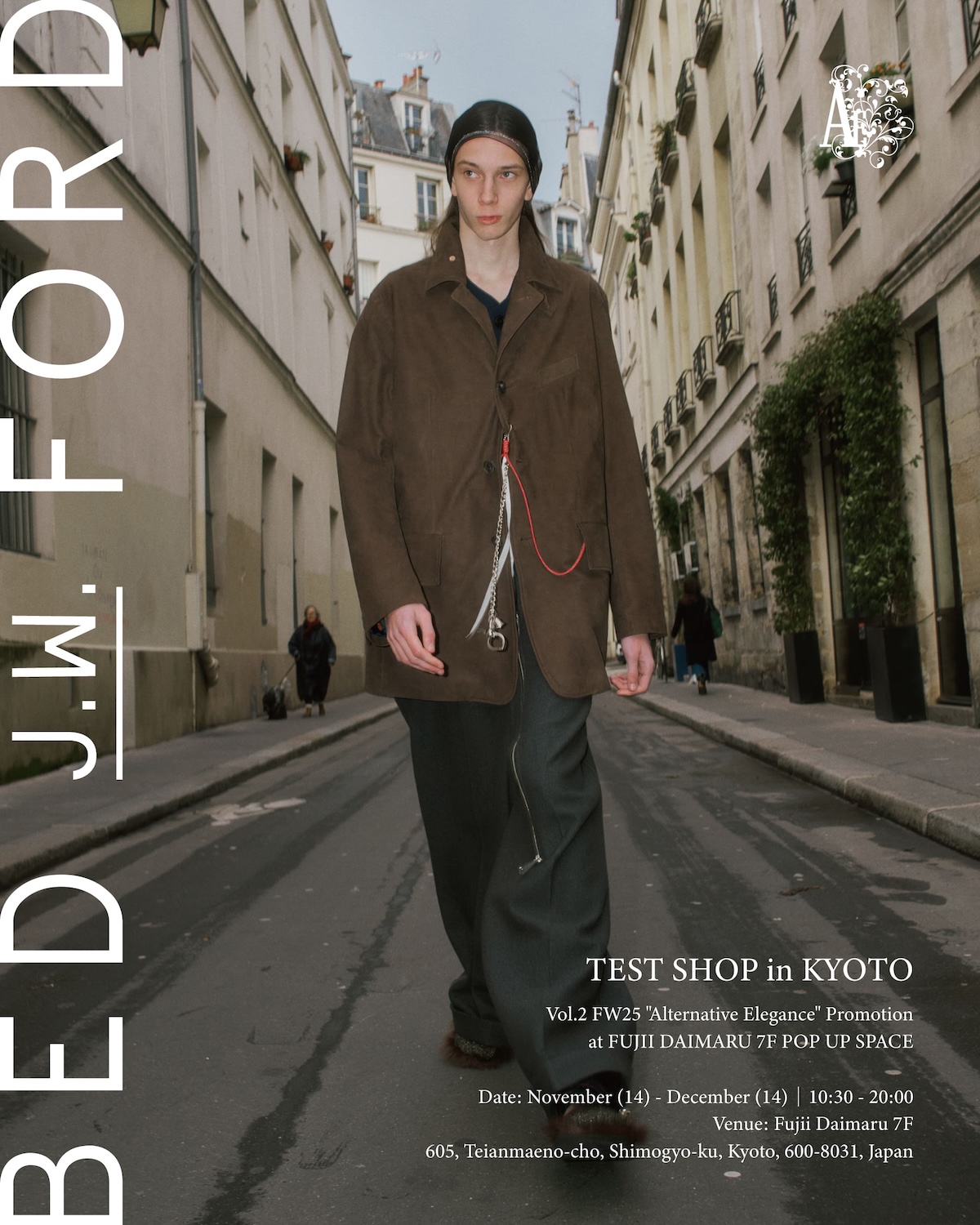 続くVol.2では、2025年11月14日(金)〜12月14日(日)まで、京都・藤井大丸7階の「THE CONTEMPORARY FIX KYOTO」、2025年秋冬コレクションのアイテムが揃うポップアップストアをオープン。期間中はBED j.w. FORDの原宿直営店でのみで展開している限定アイテムもラインナップに並ぶ。