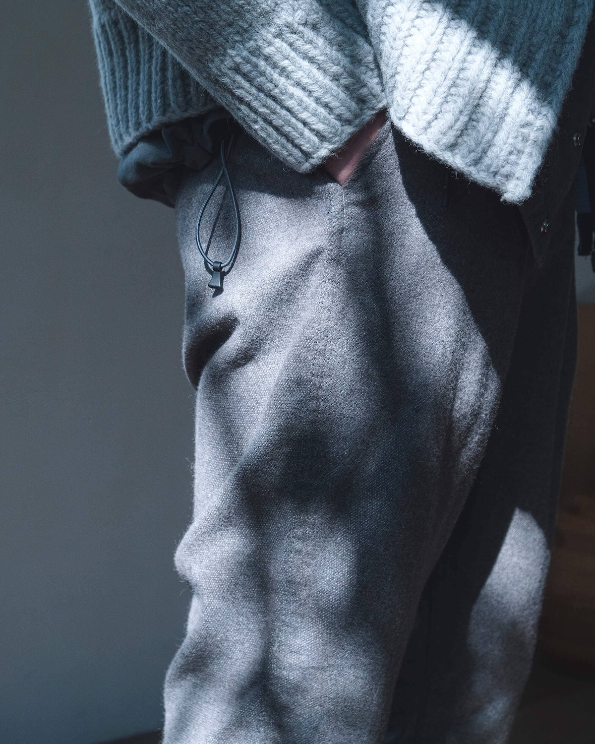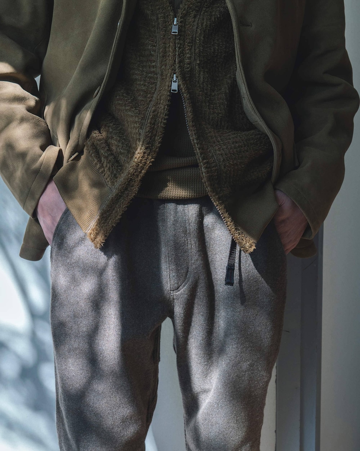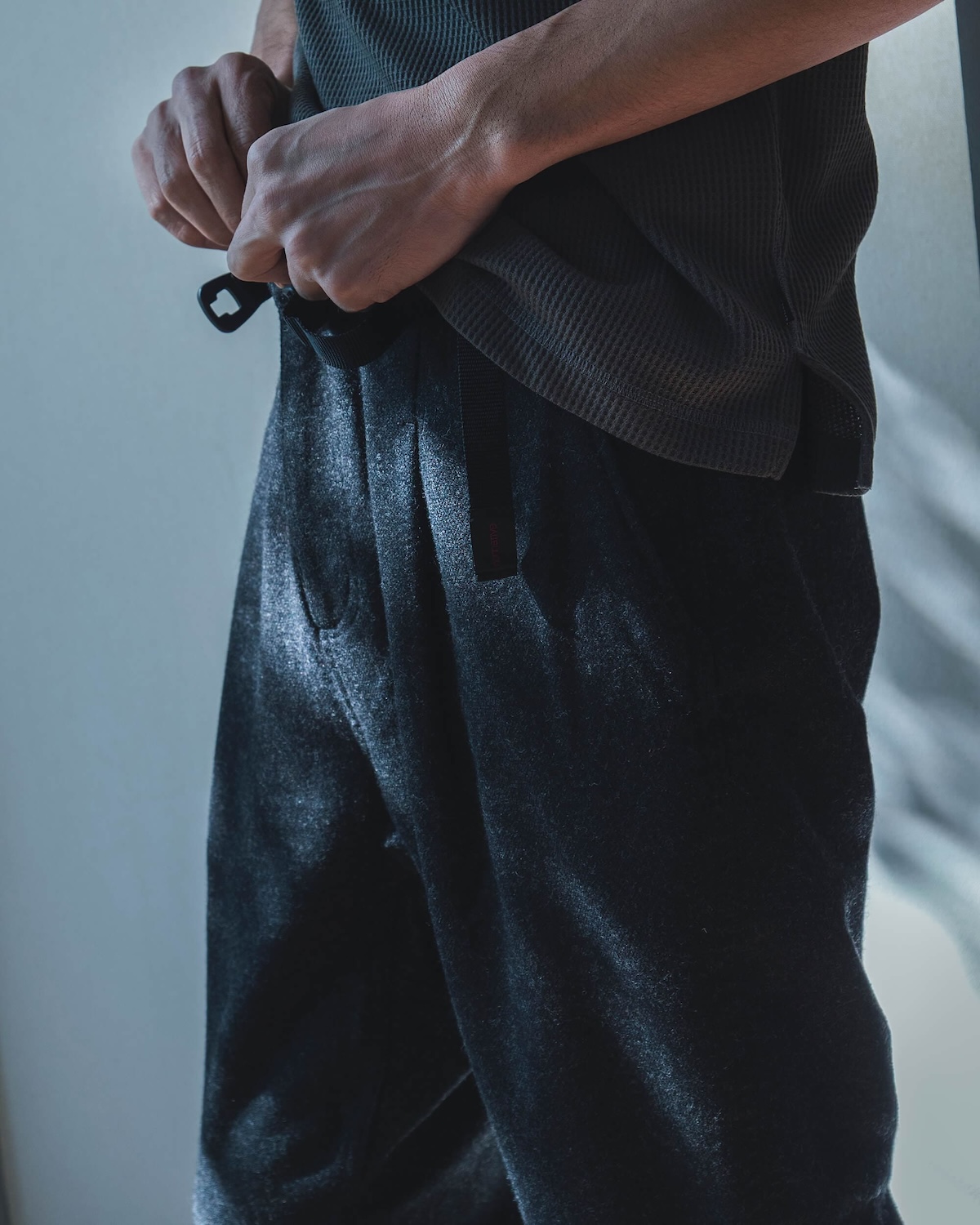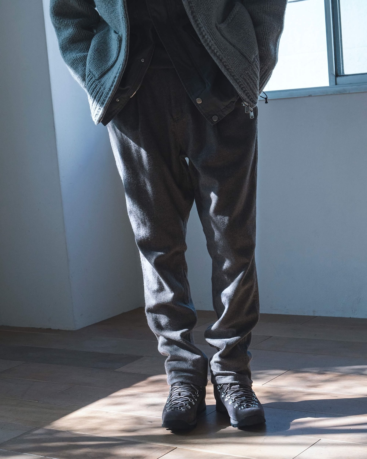 テーパードシルエットの「WALKER TP EASY PANTS」と、スリムな「CLIMBER EASY PANTS」の2型がラインナップし、いずれもnonnativeらしいシャープなシルエットを基調に、Gramicciの機能的なディテールを落とし込んでいる。