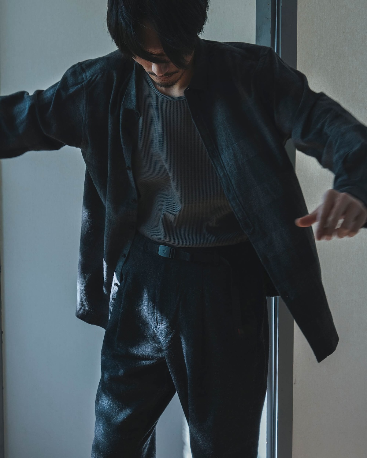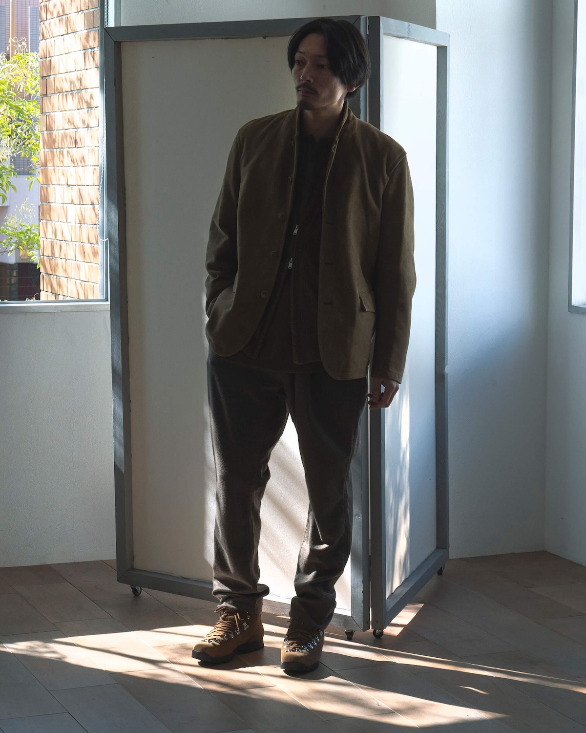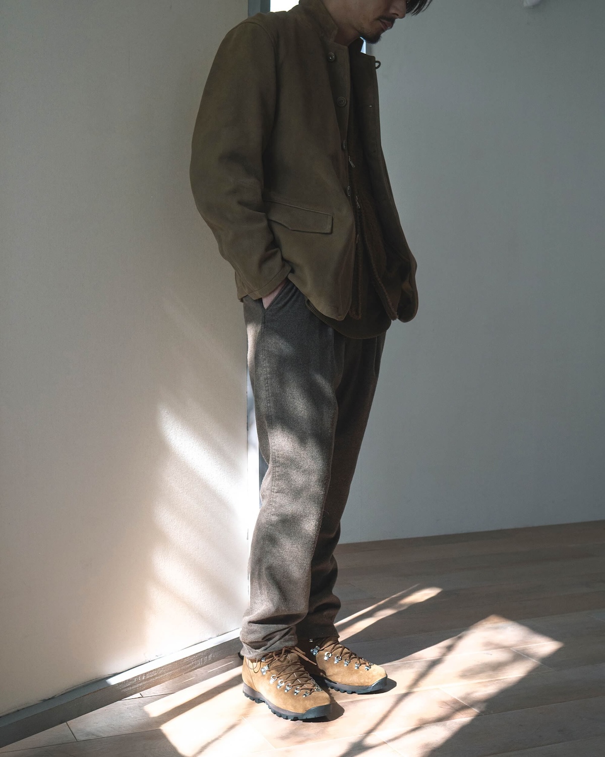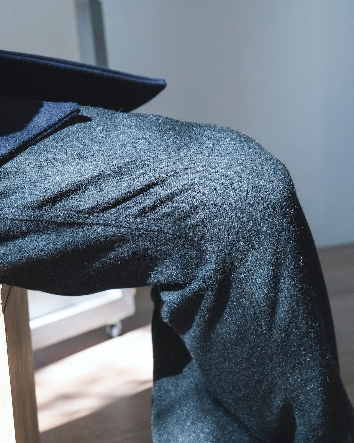 今シーズンはウールとカシミヤをブレンドしたサステナブルなツイル生地を採用し、リサイクルウールならではのブレンドされた色調に、カシミヤの起毛感が調和することで秋冬らしい深みのある表情に。シワになりにくく、適度な厚みと高いストレッチ性による、耐久性とフィット感の実現も魅力的だ。