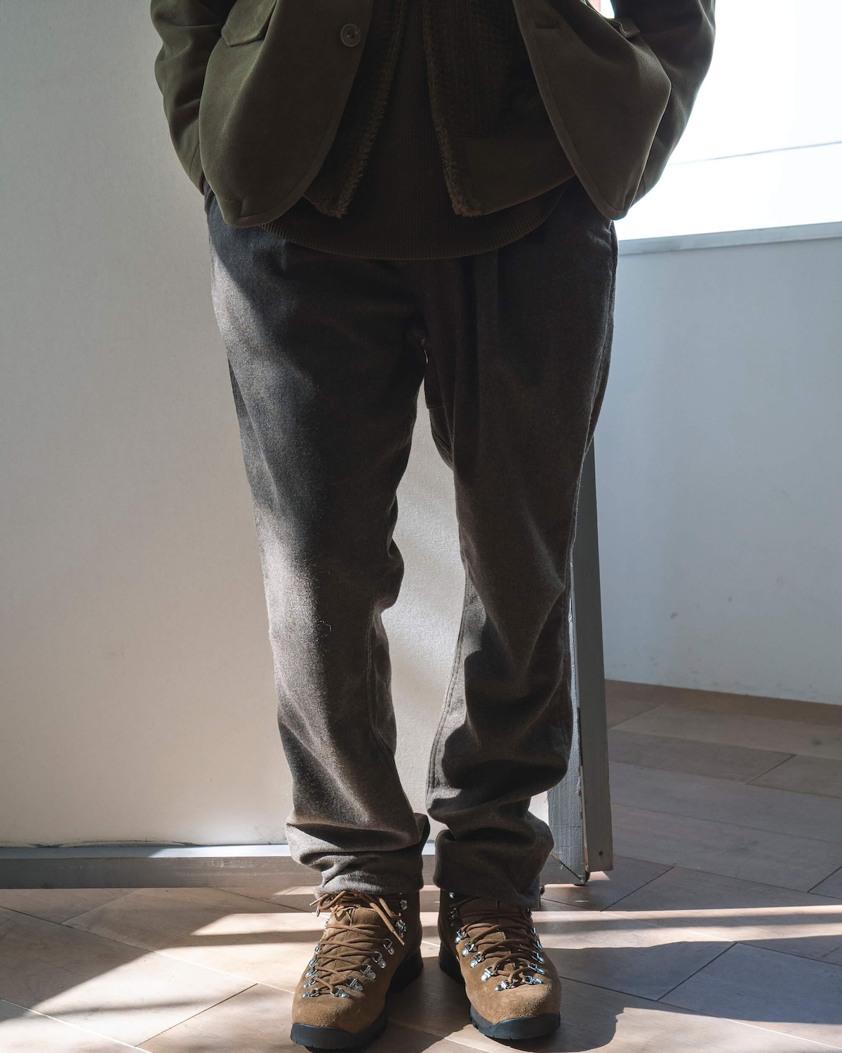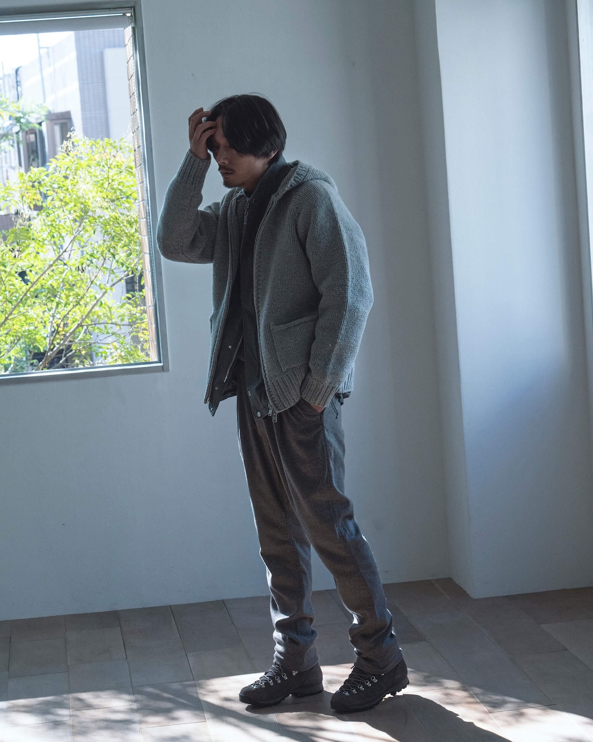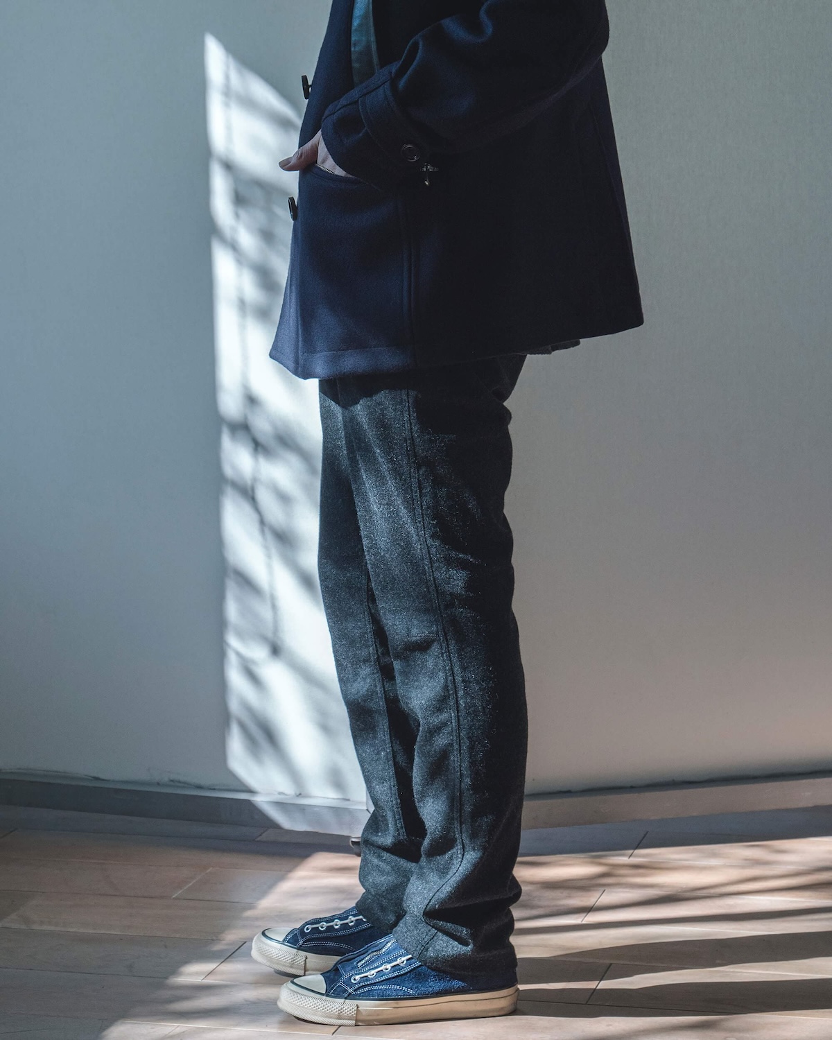 今シーズンはウールとカシミヤをブレンドしたサステナブルなツイル生地を採用し、リサイクルウールならではのブレンドされた色調に、カシミヤの起毛感が調和することで秋冬らしい深みのある表情に。シワになりにくく、適度な厚みと高いストレッチ性による、耐久性とフィット感の実現も魅力的だ。