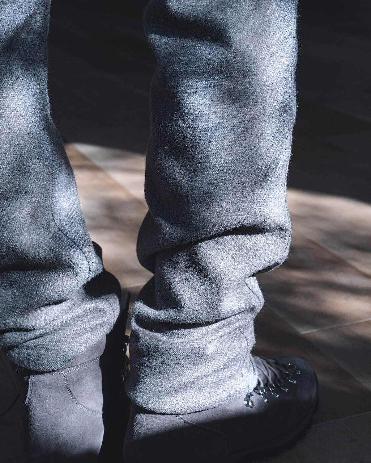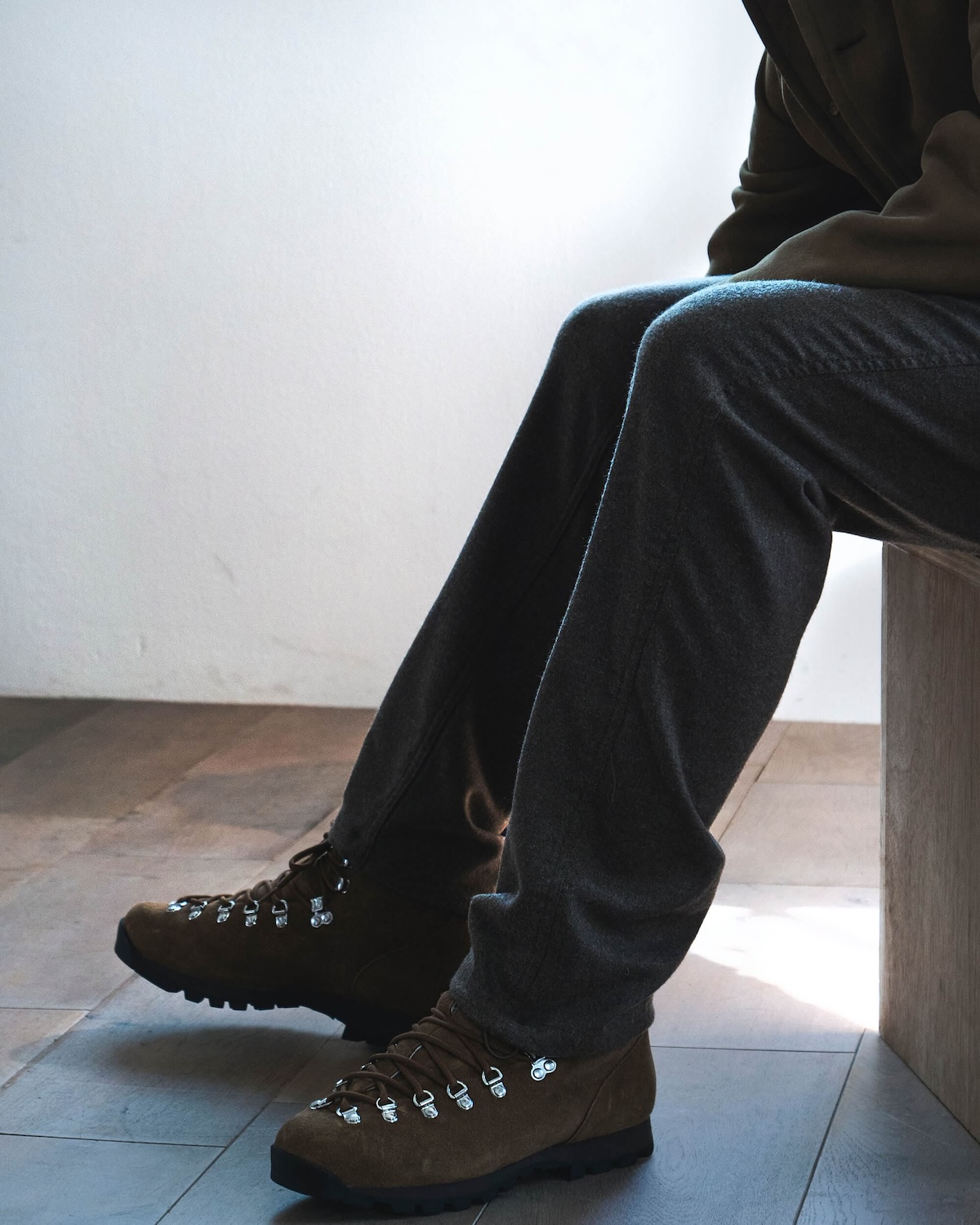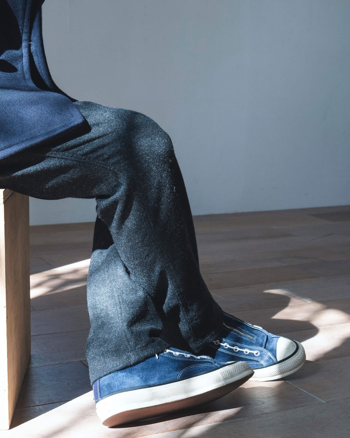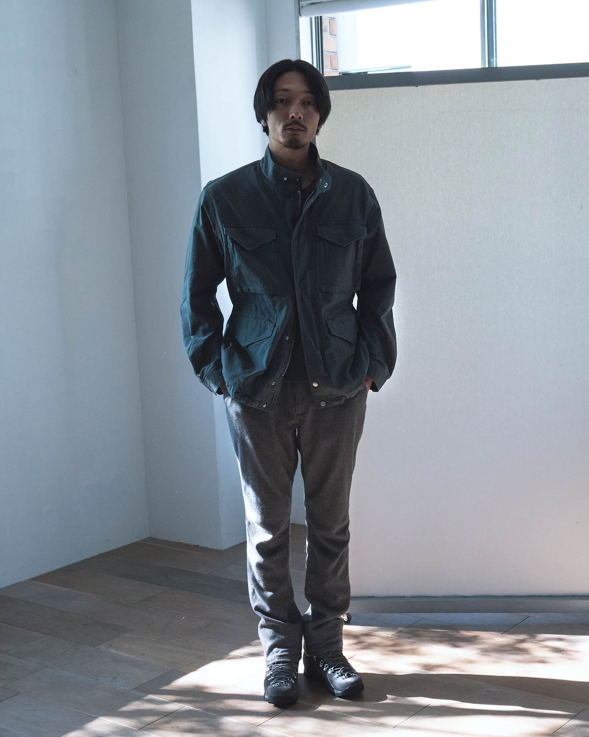 今シーズンはウールとカシミヤをブレンドしたサステナブルなツイル生地を採用し、リサイクルウールならではのブレンドされた色調に、カシミヤの起毛感が調和することで秋冬らしい深みのある表情に。シワになりにくく、適度な厚みと高いストレッチ性による、耐久性とフィット感の実現も魅力的だ。