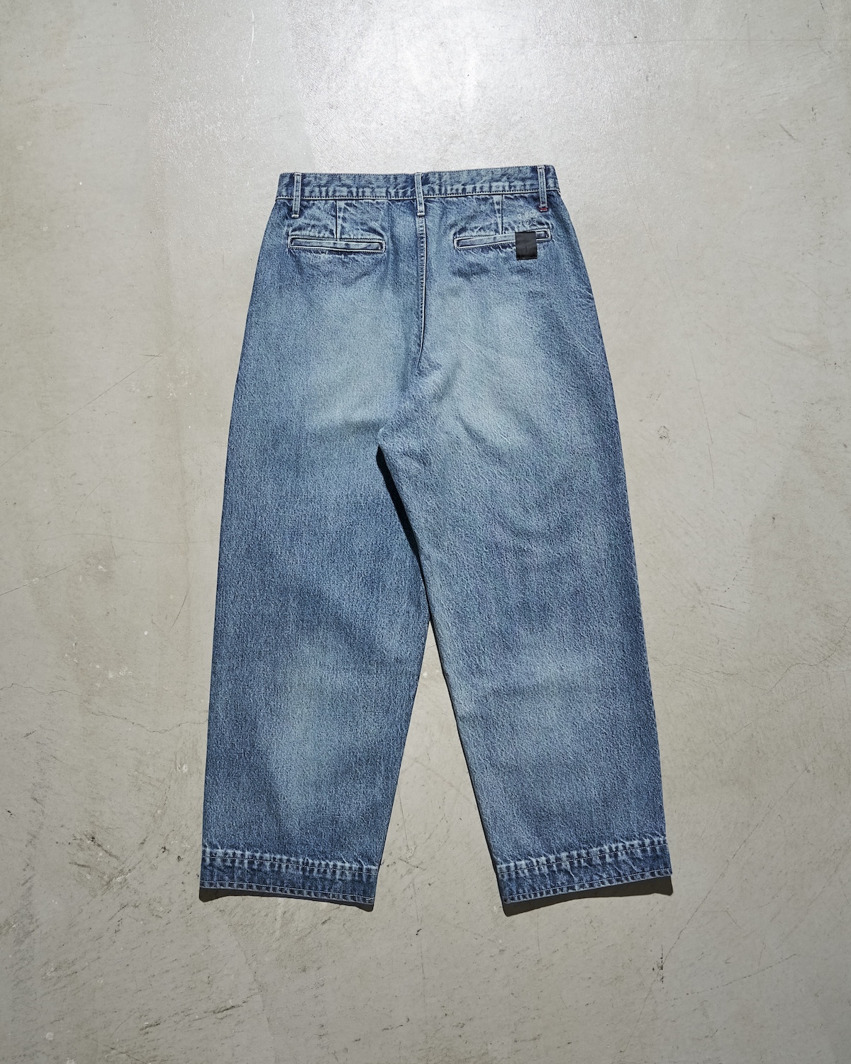 「Two Tuck Tapered Pants」は、Graphpaper定番のタック入りデニムパンツをベースに、N.HOOLYWOODで使用されている13ozデニムに加工を施すことで、ヴィンテージライクな奥行きある表情を演出。片玉縁仕様のヒップポケットや、両ブランドのネオバボタン、左脚のロゴプリント、右後ポケットに施された"087373"のレーザープリント、オリジナルフラッシャーなど、別注ならではのディテールも随所に盛り込まれている。