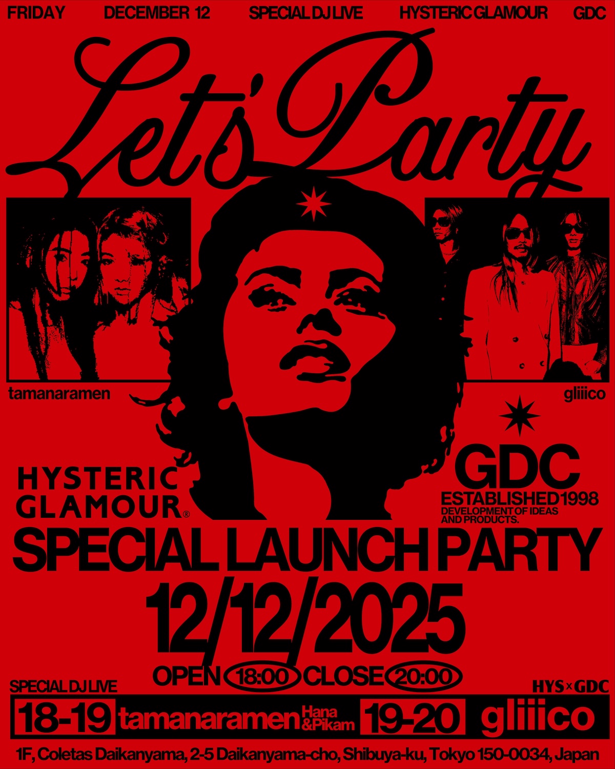 本コレクションは2025年12月13日(土)11:00に、「GDC 代官山 フラッグシップストア」とGDC 公式オンラインストア、HYSTERIC GLAMOUR 渋谷・名古屋・大阪・仙台・京都・福岡店で販売をスタートする。両者のクリエイションの歴史が交錯するコラボレーションをお見逃しなく。