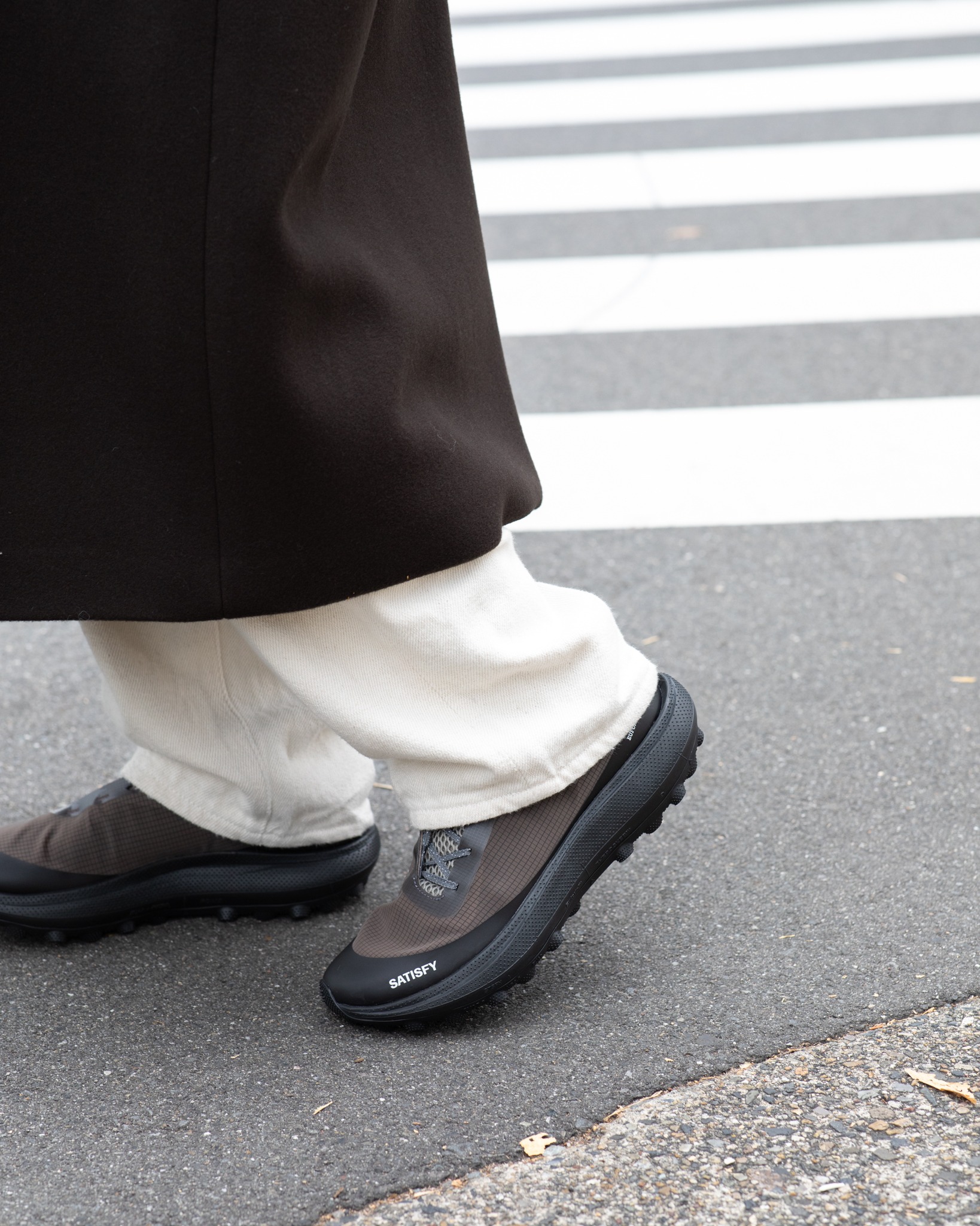 「フランス・パリ発のランニングブランド、SATISFY(サティスファイ)のシューズです。今シーズンにリリースされたブランド初のオリジナルシューズは、ランニングに特化したハイパフォーマンスな機能はもちろん、洗練された高いデザイン性も見逃せません。