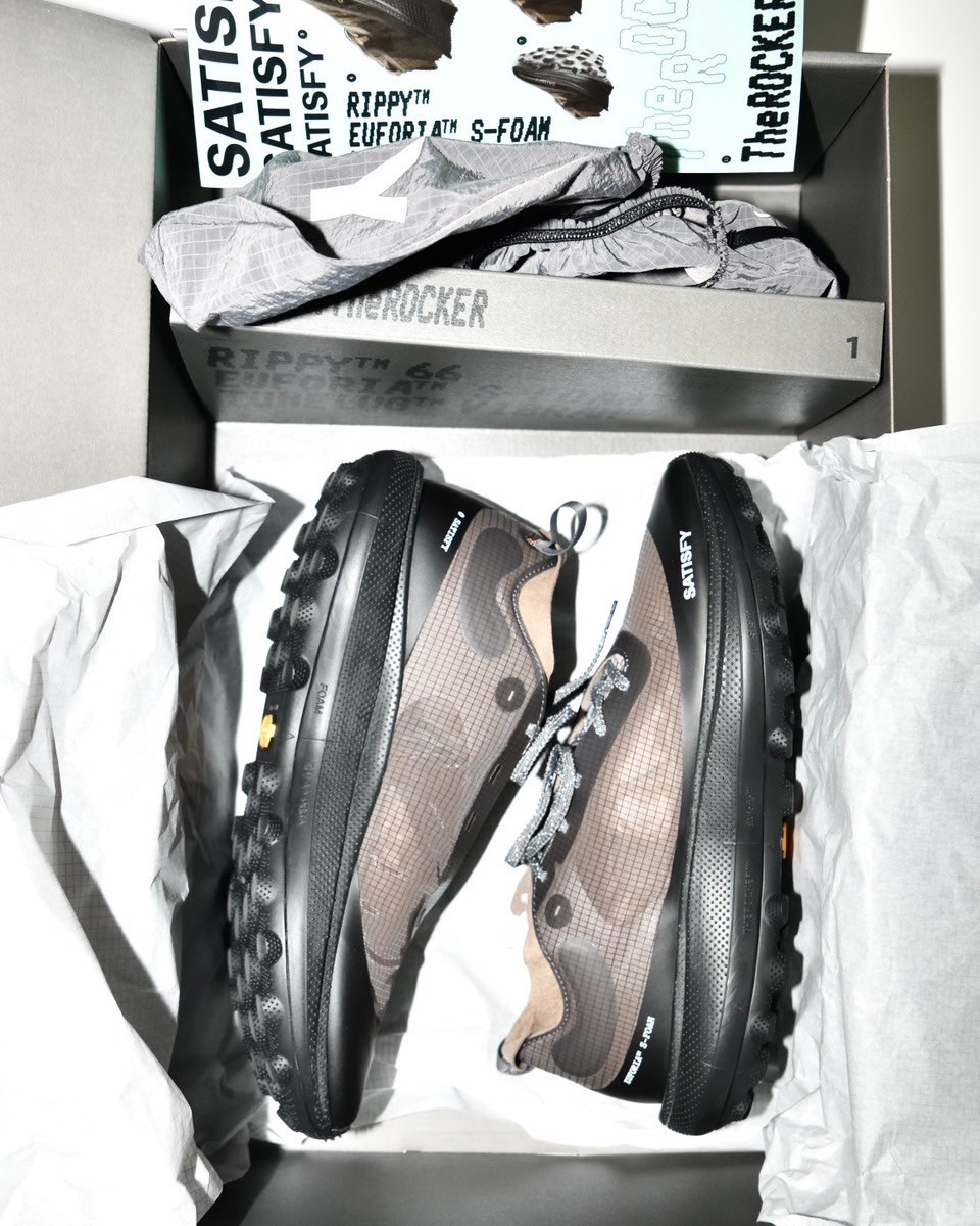 長距離を移動する人のために設計され、あらゆる地形での快適さを追求した「The ROCKER」は、高いグリップ力に加え、通気性と耐久性も完備。SATISFYが独自に開発したテクノロジーの「TuneLug」、「Euforia」、「Rippy66」を搭載し、長距離のランニングだけでなく、ロードからトレイルへの移行にも最適なシューズは、都市でもその高いポテンシャルを発揮してくれる頼もしさも心強い。