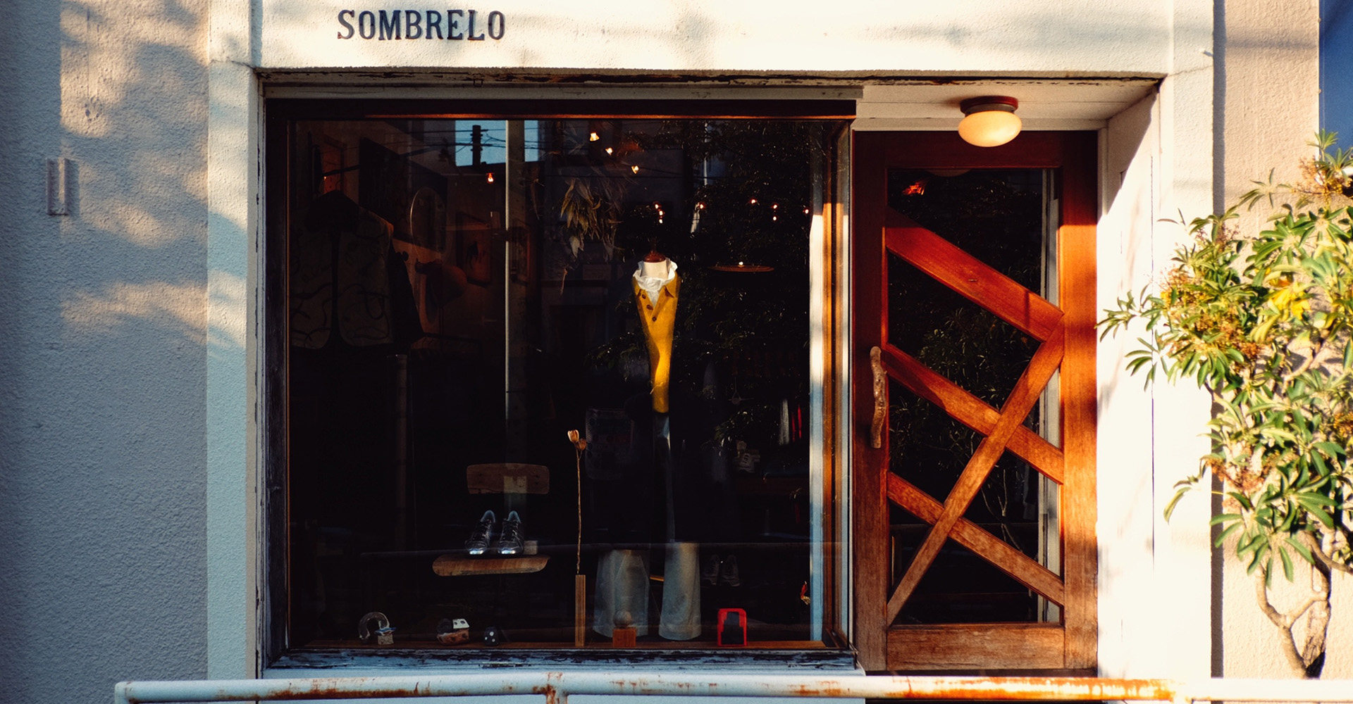 池尻大橋から歩いて15分ほど、駒場東大前からは10分弱。通りには学校があり、学生や近隣住民の往来はあるものの、セレクトショップや目立った店はほとんど見当たらない。「SOMBRELO(ソンブレロ)」は、そんな落ち着いた住宅地の一角にひっそりと佇んでいる。目的がなければ通り過ぎてしまいそうな場所だが、だからこそ、この店を訪れる行為そのものがひとつの“選択”になる。